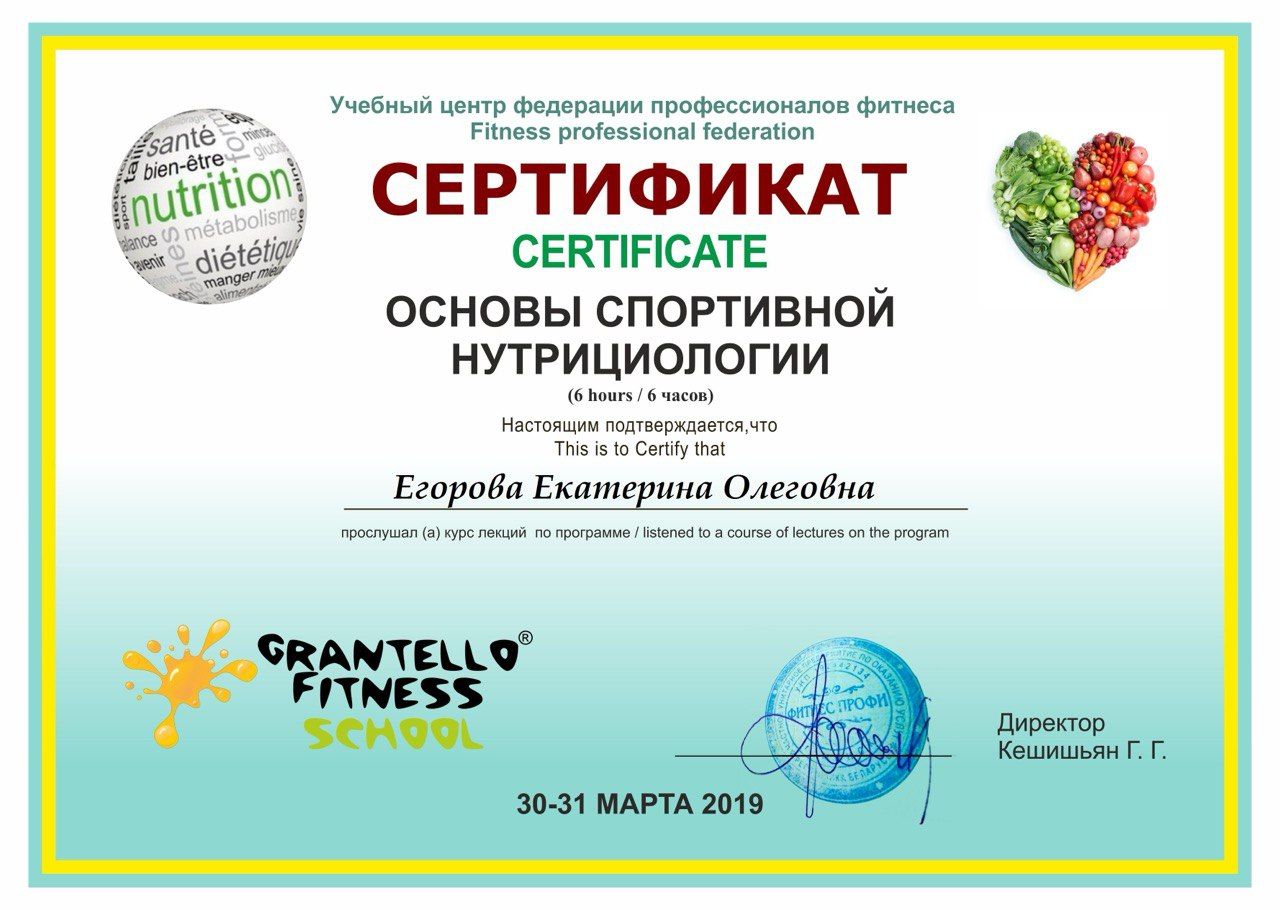 Основы спортивной нутрициологии, GRANTELLO Fitness School